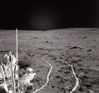 lunar surface. This photo is shot mostly up-sun. (NASA: