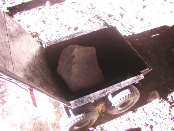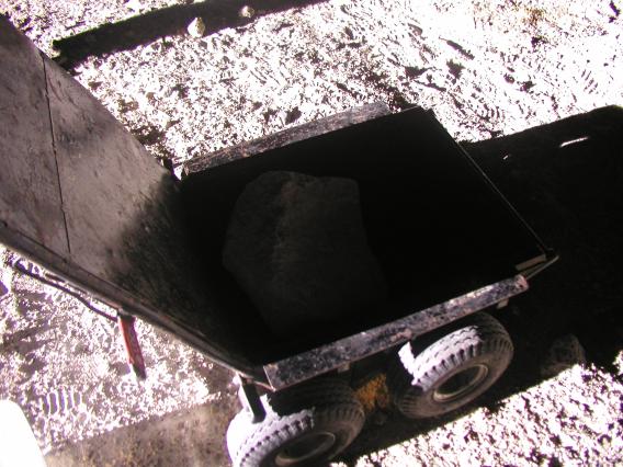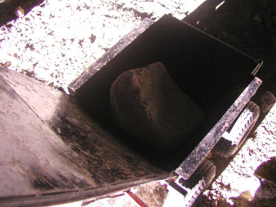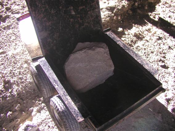 bit like a wheel barrow, but fully stable on four wheels. The rocks