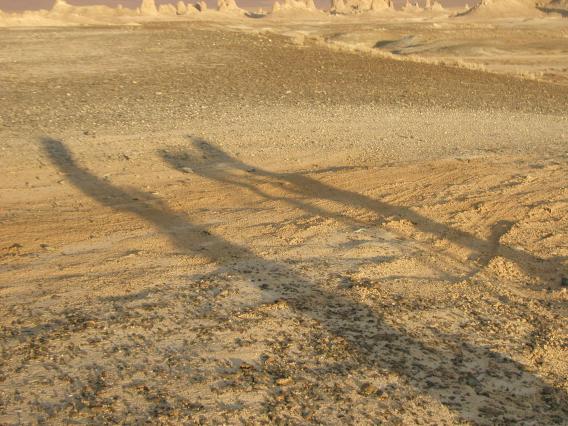 In Fig. 5 the photographer shoots directly down-sun. His shadow and those of his colleagues appear largely undistorted. The sun elevation is quite low here.