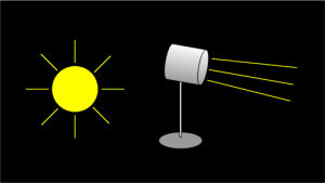 Conspiracists note correctly that the sun is so far away that its rays arrive at the lunar surface practically parallel. The key to understanding why the Mythbusters' experiment is valid lies in two important points. First, you don't have to put an artificial light very far away from the scene before its rays are also parallel enough for scale photography. Second, their studio light employs a Fresnel lens that focuses the light. The sun sends out light in all directions. There is no lens for it. A Fresnel lighting instrument artificially limits the divergence of the light rays as they travel from the light to the subject (Fig. 2). Their experiment proved that terrain and contour also has an effect on how shadows are seen and photographed. And that effect wasn't accounted for in the conspiracy theorists' expectations. In more appropriate terms: "Myth Busted!"